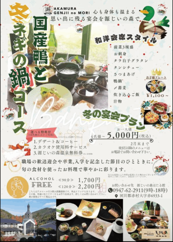 ご予約・詳細はほたる館受付またはお電話にてお気軽にお問い合わせください。TEL: 0947-62-2911