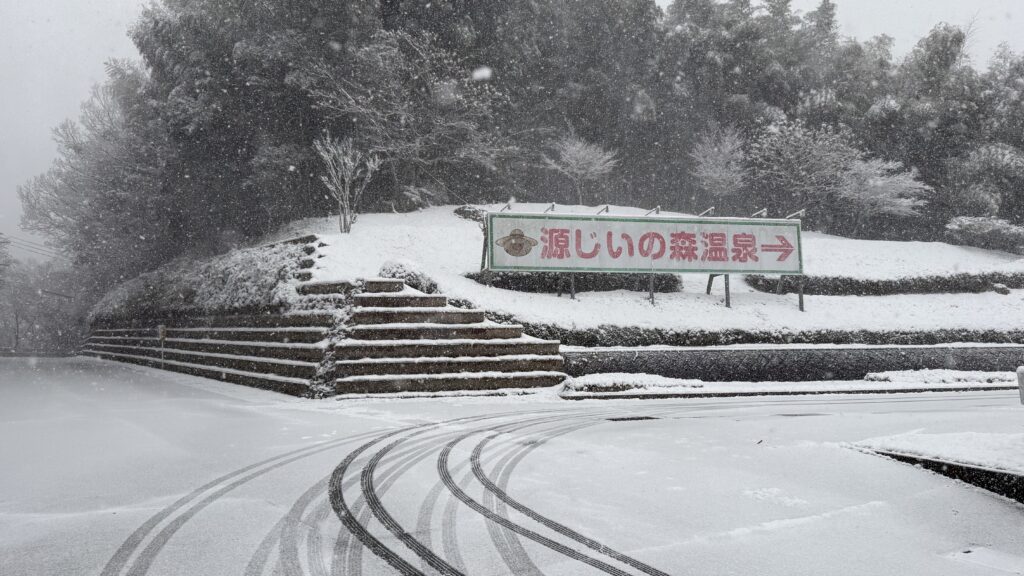 本日、1月2日(金)は早朝から雪が降っている天候ではありますが、源じいの森キャンプ場・源じいの森温泉ともに通常通り営業いたします。